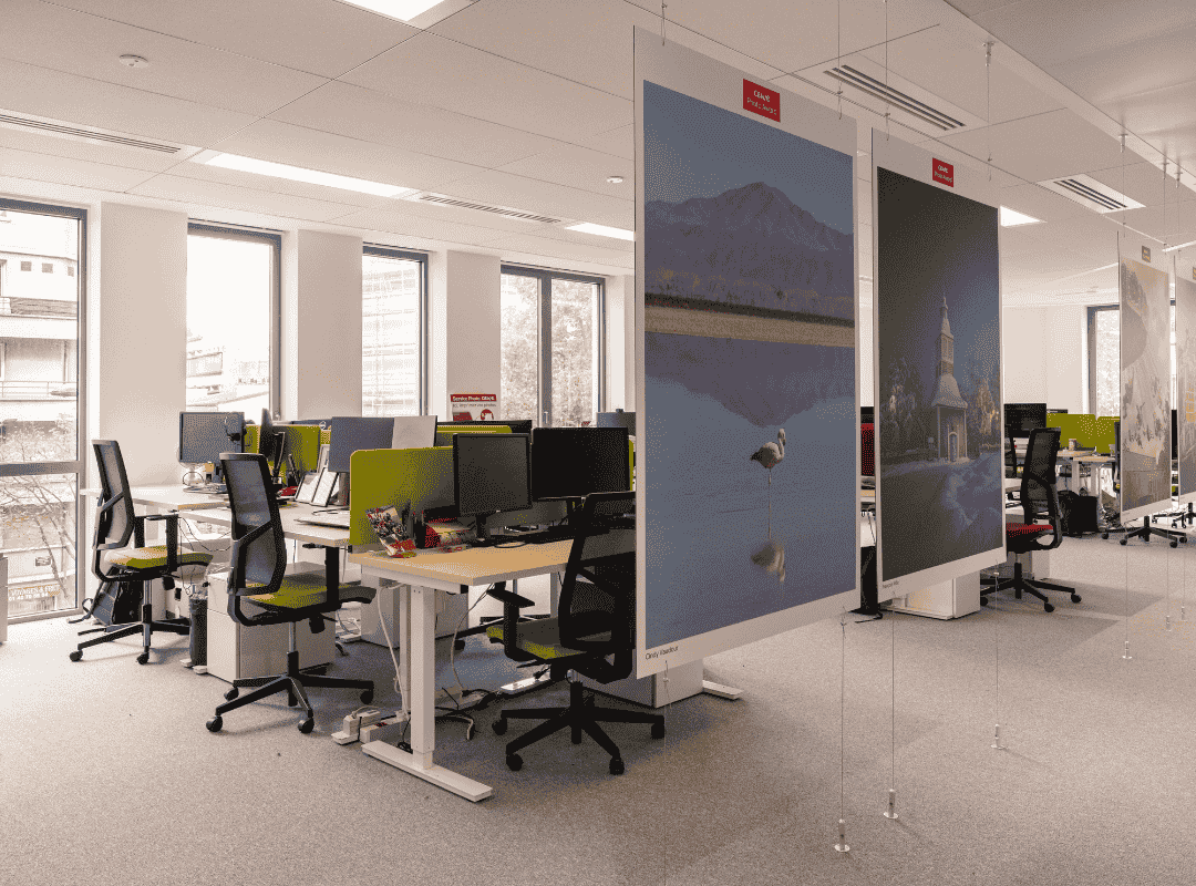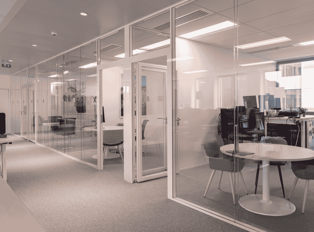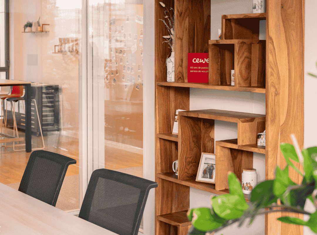Le projet comprenait la mise en place de cloisons, la pose de sols, les travaux de peinture ainsi que l’installation de vitrophanie, contribuant à structurer visuellement les espaces tout en renforçant l’identité de CEWE. Un travail d’agencement sur mesure a également été réalisé pour répondre aux usages spécifiques des équipes.